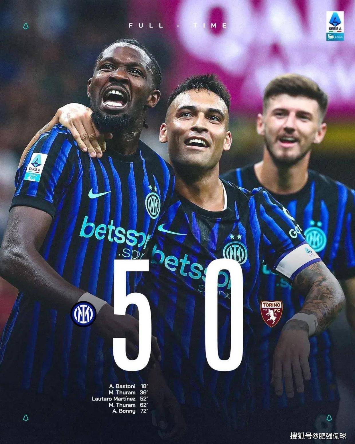 当然,大胜固然开心,但我们依然要保持清醒,这只是新赛季第一场比赛,对手都灵也不算什么强敌,所以这场胜利有一定的偶然性!不过,接下来我们要全力让这种偶然变成必然!Forza Inter,一直赢下去!